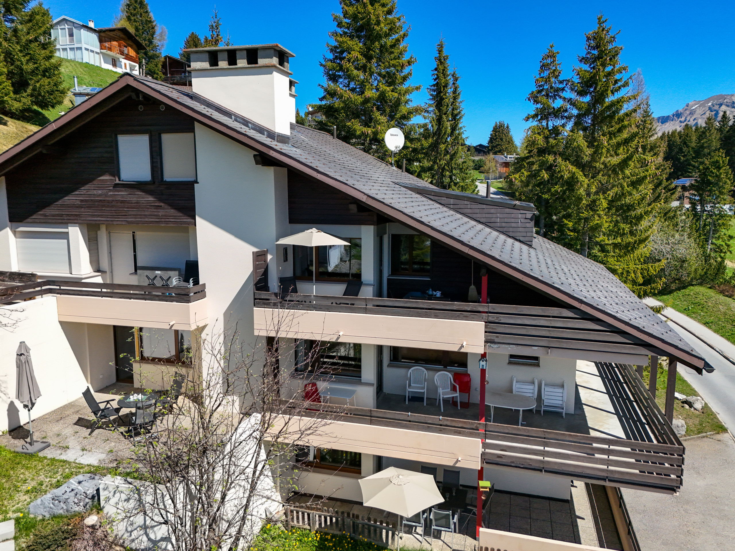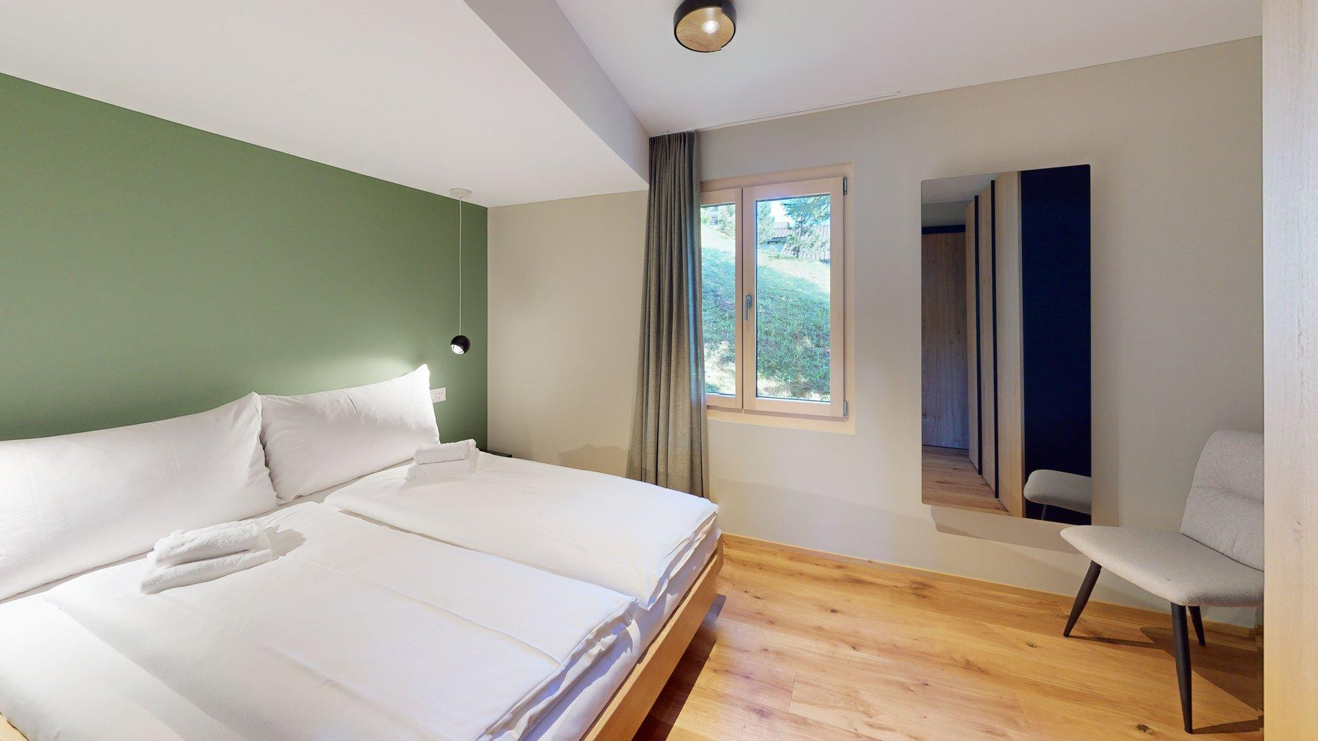 Leave the everyday life behind and spend relaxing days in the accommodation Davos Lai Valbella, located in the idyllic Valbella region. This charming vacation apartment is the ideal starting point for unforgettable excursions into nature. It is situated in a quiet location in the middle of the Arosa Lenzerheide ski area. For sports enthusiasts, The ground-floor apartment features a cozy bedroom for restful nights, as well as a living area with a fireplace, dining table, and TV for your entertainment. To fully enjoy the breathtaking mountain views, a sunny terrace is at your disposal. The fully equipped kitchen includes a refrigerator, oven, and dishwasher, allowing you to prepare your favorite meals at any time.
