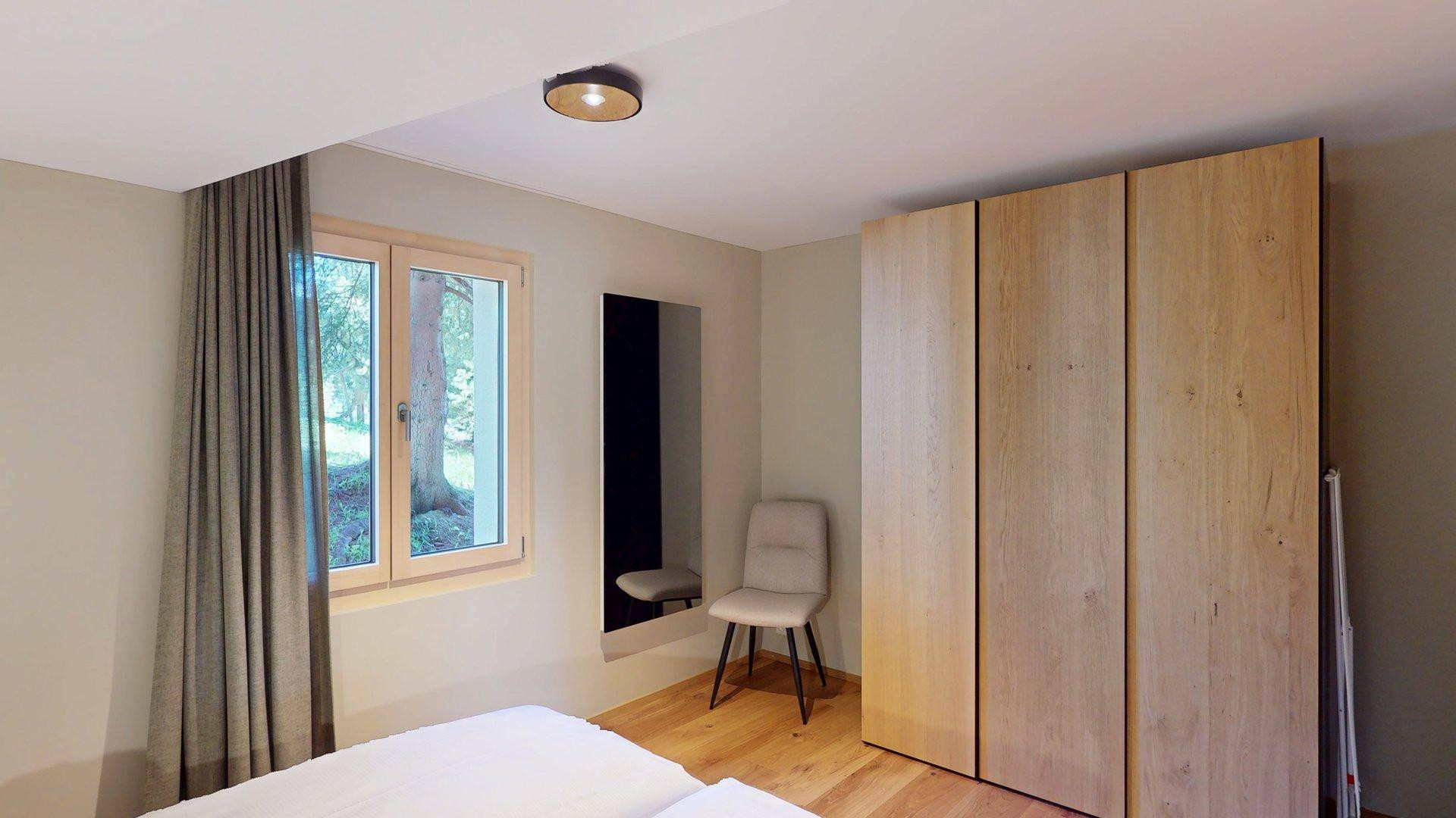 Die Ferienwohnung im Erdgeschoss verfügt über ein gemütliches Schlafzimmer für erholsame Nächte sowie einen Wohnbereich mit Kamin, Esstisch und einem Fernseher für Ihre Unterhaltung. Um die atemberaubende Aussicht auf die Berge bestmöglich zu geniessen, steht Ihnen eine sonnige Terrasse zur Verfügung. Die voll ausgestattete Küche ist mit einem Kühlschrank, einem Backofen und einem Geschirrspüler ausgestattet, sodass Sie nach Belieben Ihre Lieblingsgerichte zubereiten können.