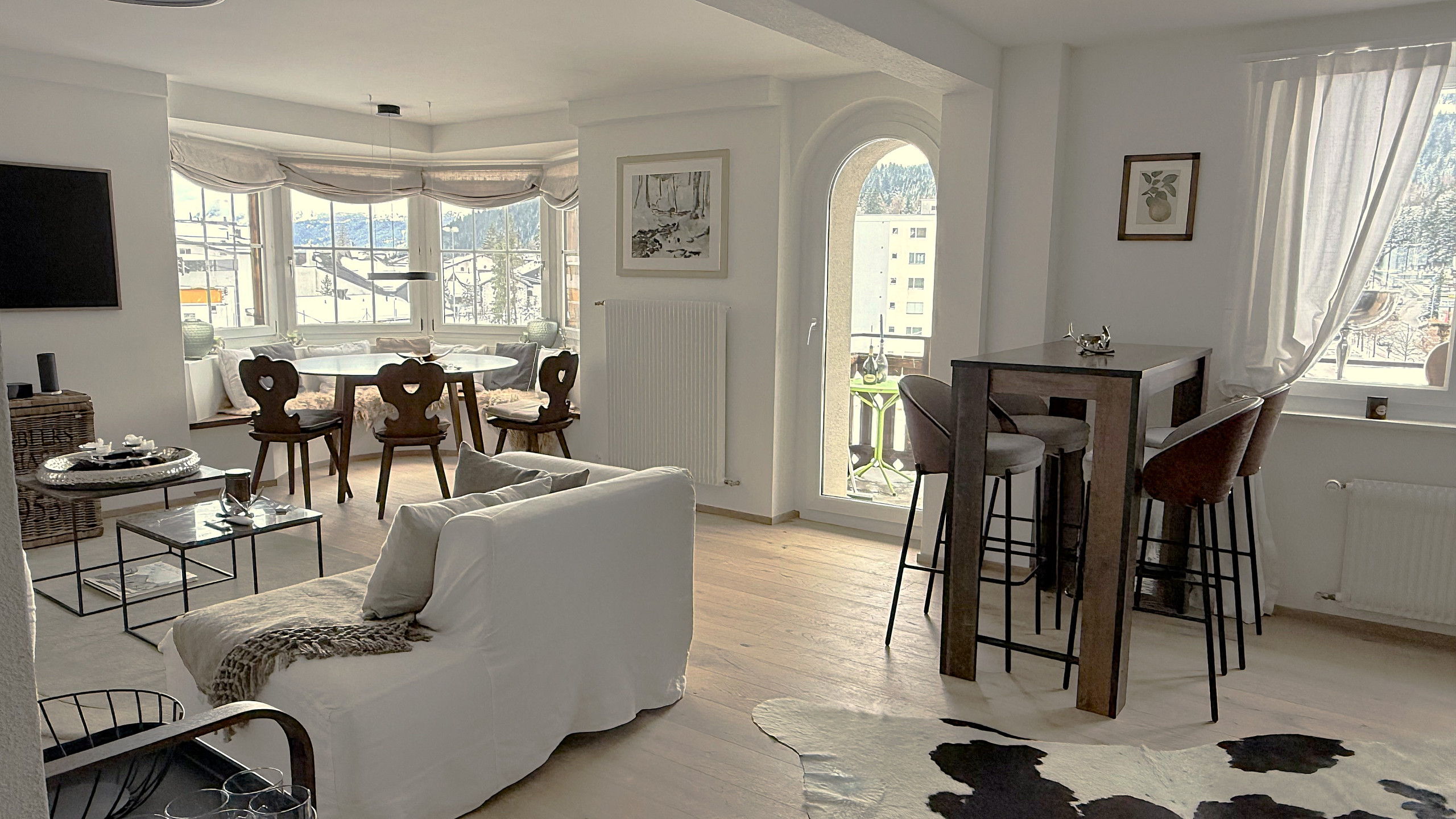 Diese charmante 4,5-Zimmer-Wohnung von 124 m² bietet Platz für bis zu 6 Personen und besticht durch ihren stilvollen Komfort sowie einen atemberaubenden Blick auf die umliegenden Berge. Tauchen Sie ein in die alpine Atmosphäre und genießen Sie die Ruhe in einer zugleich bestens angebundenen Lage.